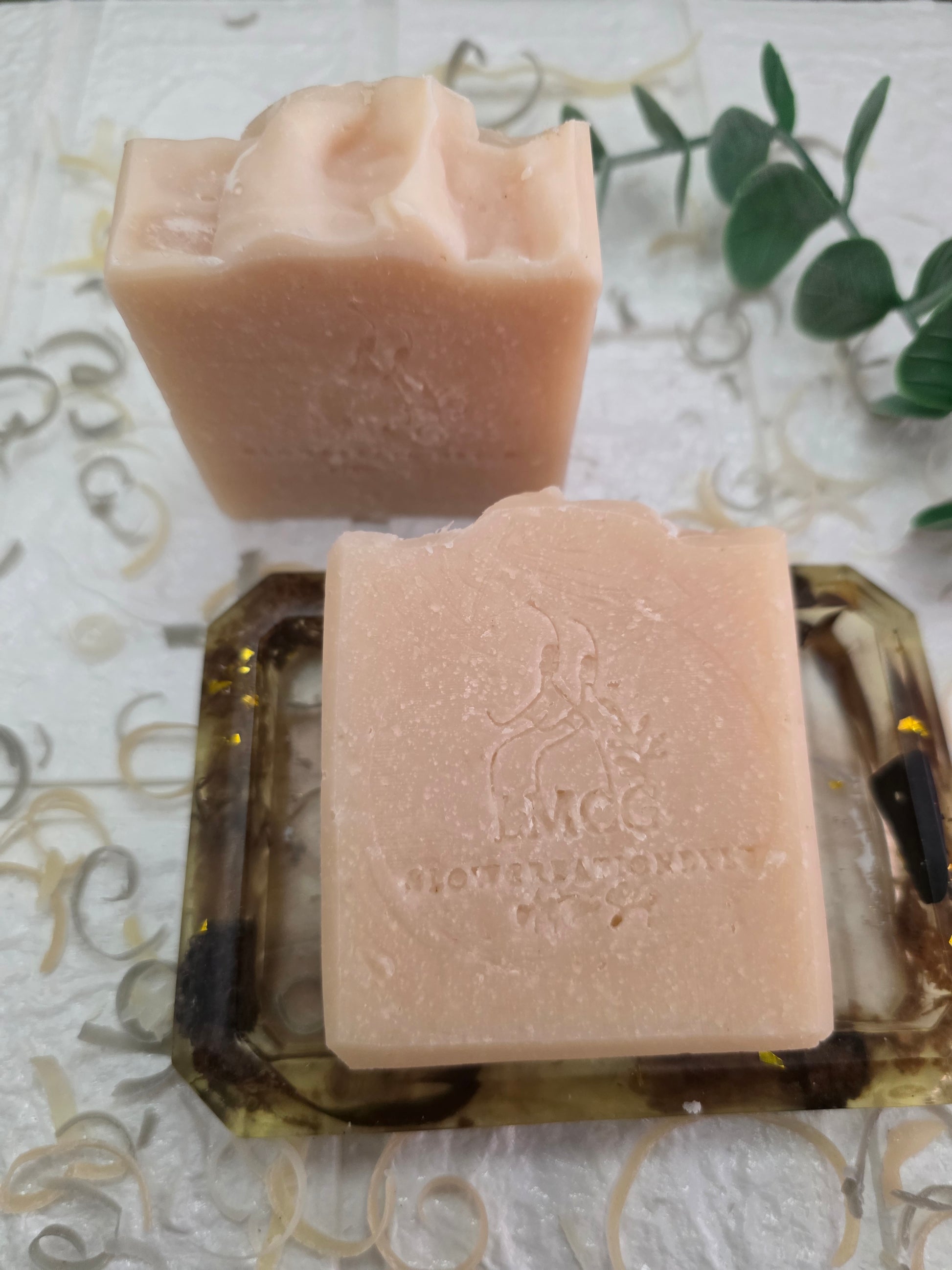 Ingredients: Cold Saponification blend, olive oil, coconut oil, avocado oil, shea butter, cocoa butter, rosehip oil, rose clay and vitamin c.