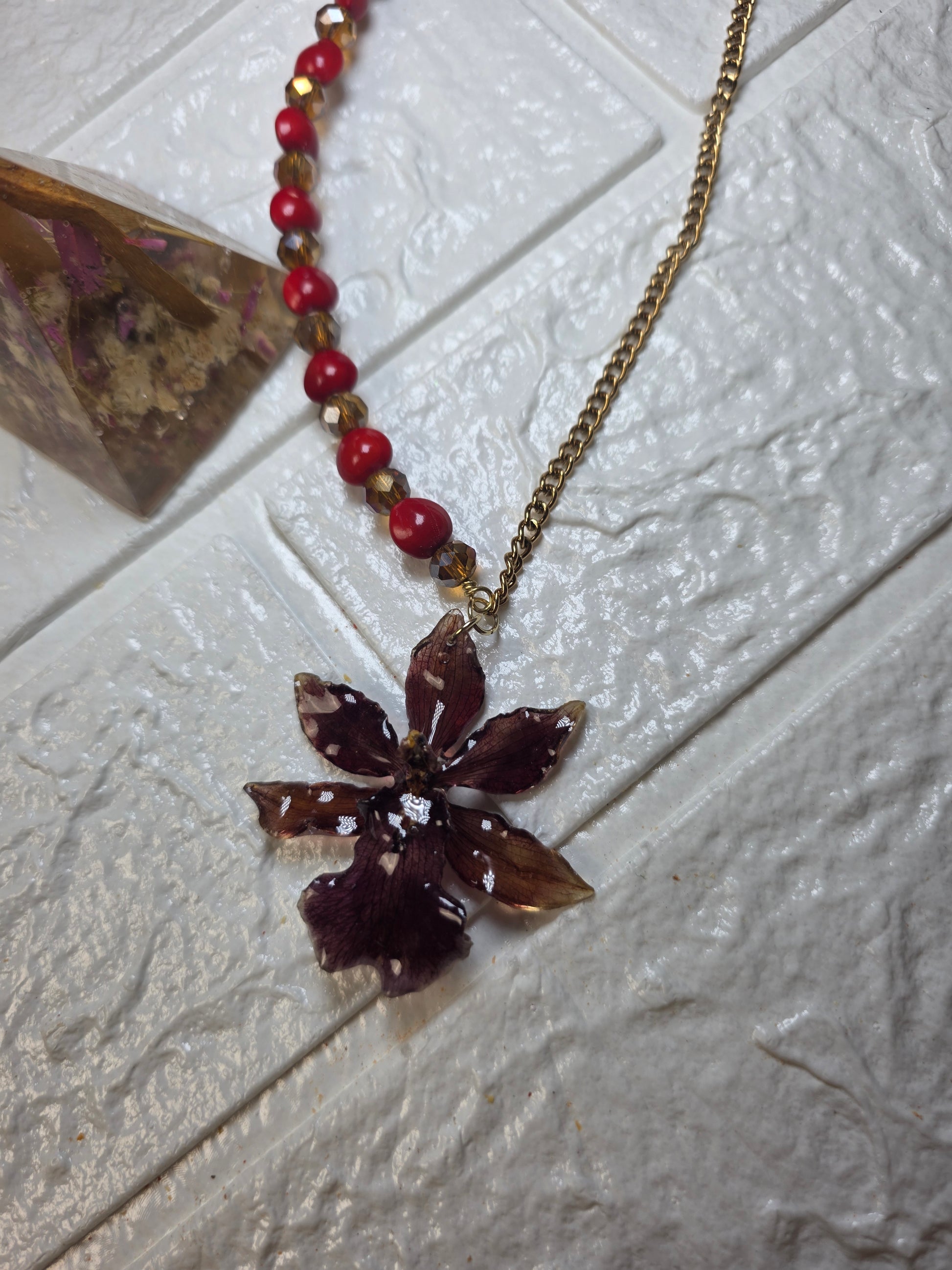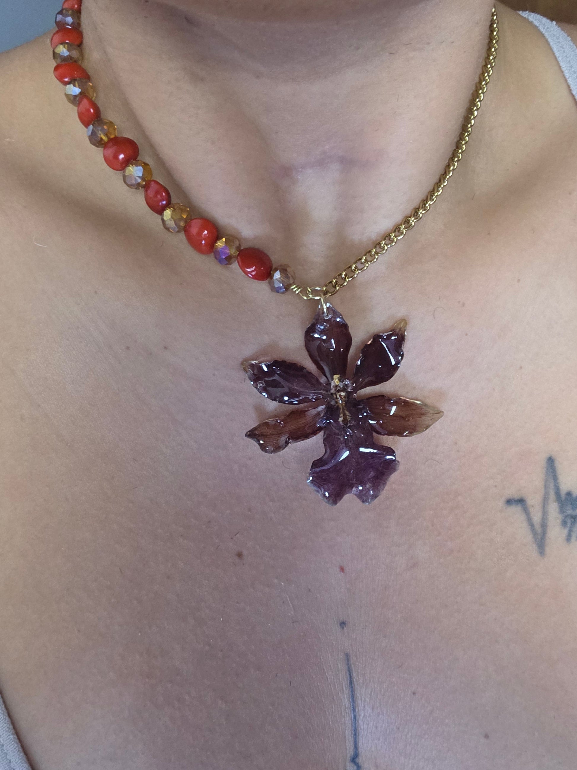 Collar Orquídea Natural Preservada con Semillas