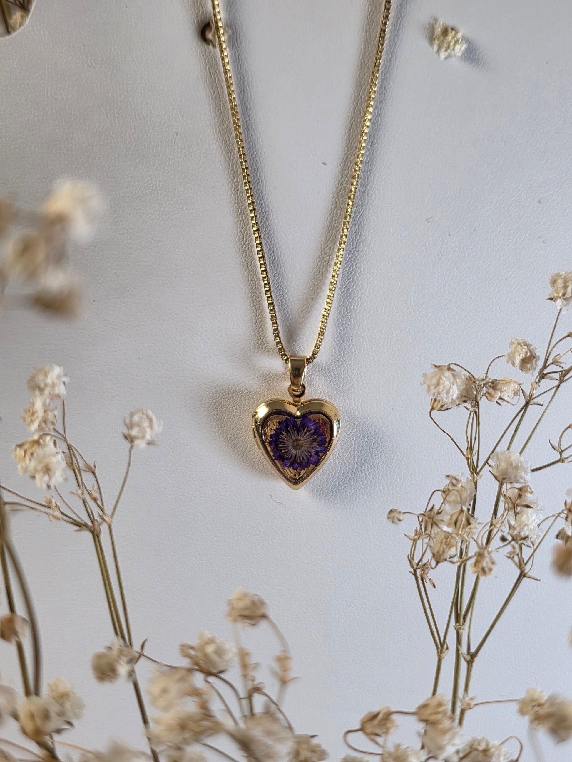 Hermoso corazon relicario con detalle de flor violeta, delicado y lleno de memorias. Cada pieza guarda historia, naturaleza y esencia única. 💛