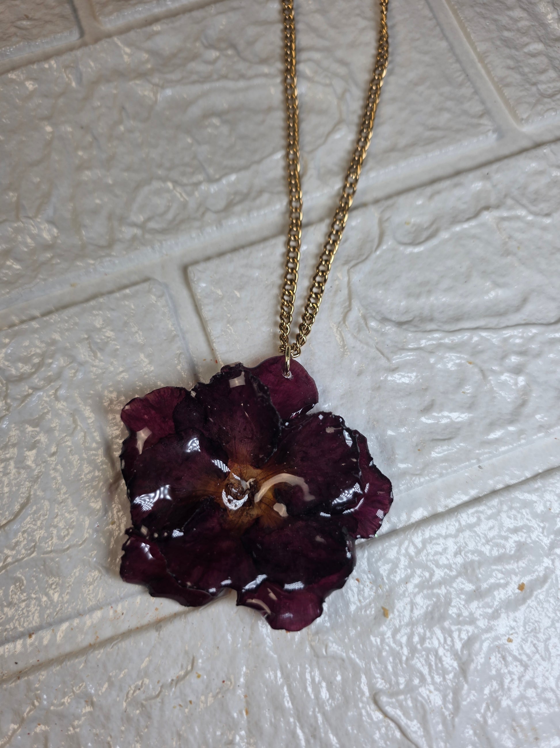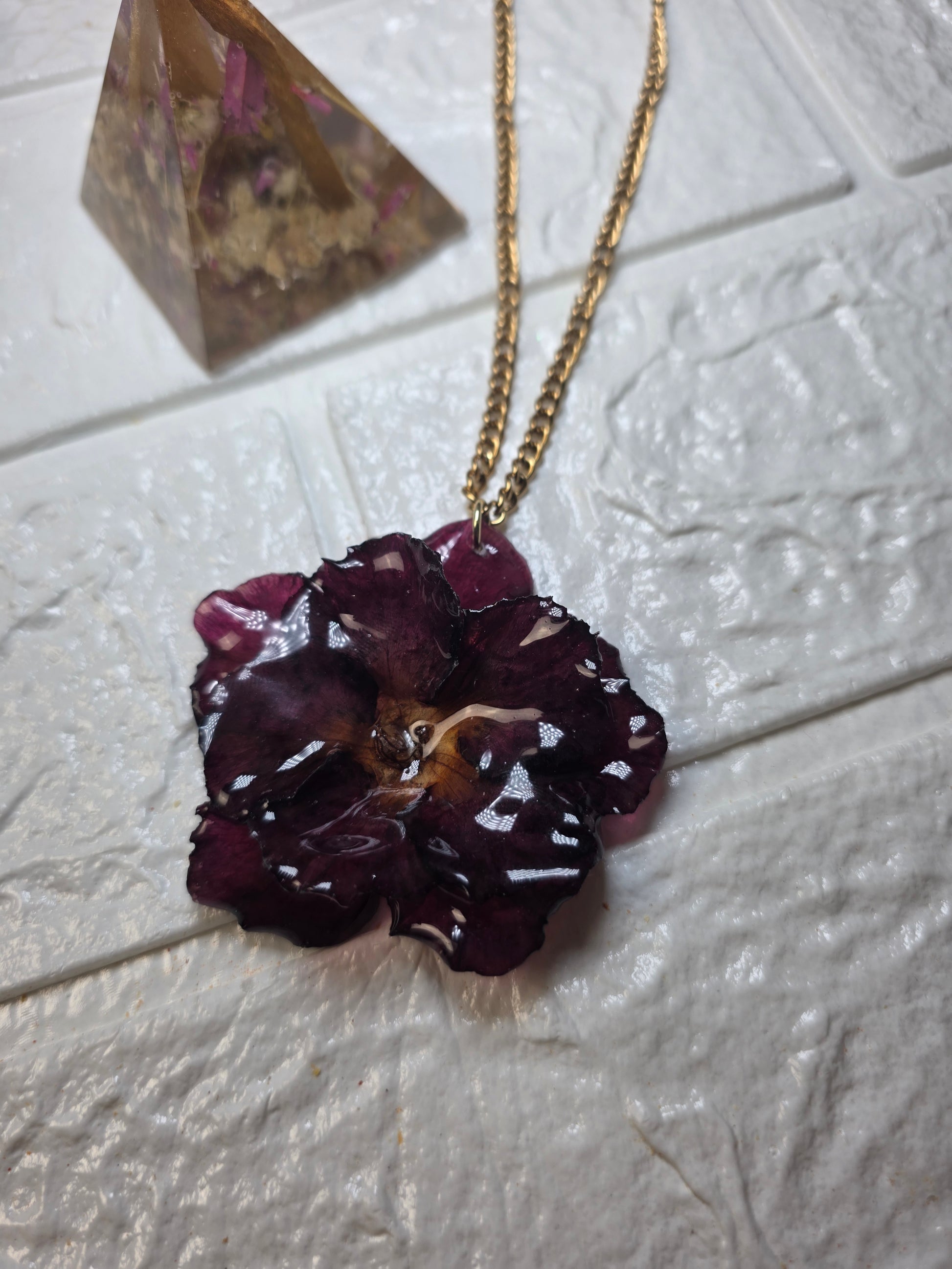 Cada collar es hecho a mano y no se repite, ya que la forma y tonos de la flor son únicos.